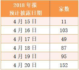 4月15日—4月21日这一周共有497股披露年报,其中4月20日最多,高达152家。