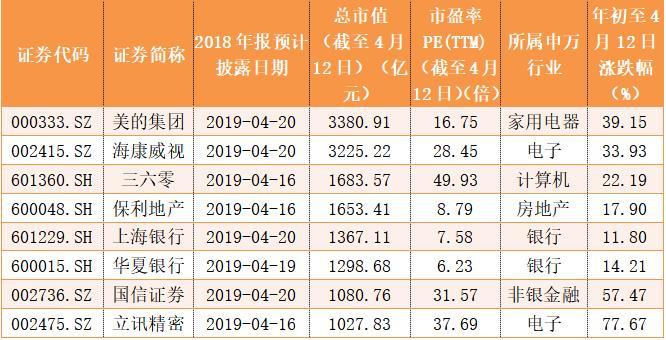 美的集团、海康威视、三六零等千亿以上市值上市公司将披露年报。