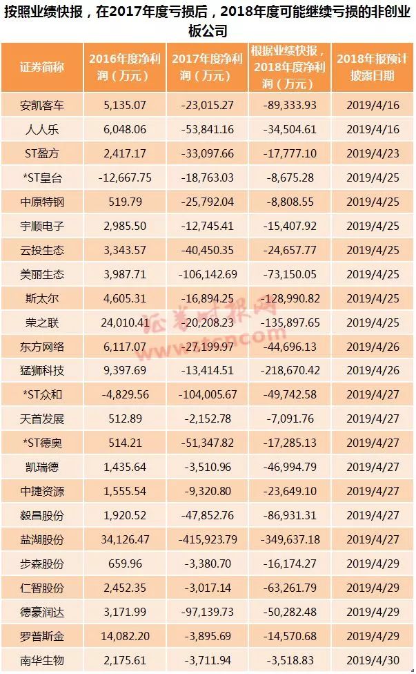 值得注意的是,上述两家公司都将于明天晚间披露2018年度年报。如果最终的2018年度年报披露业绩亏损,上述两家公司的股票将会被*ST。