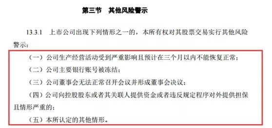 如《深圳证券交易所股票上市规则》(2018年11月修订)规定,深交所有权对其股票实施ST的情形有以下几种:
