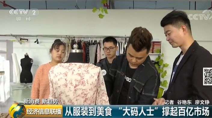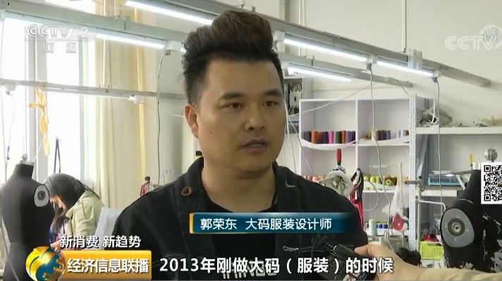 大码服装设计师 郭荣东:2013年刚做大码服装的时候,全国其实没有几家是做大码服装的。现在,我们看的数据比前几年大好几倍,大码服装越来越低龄化。