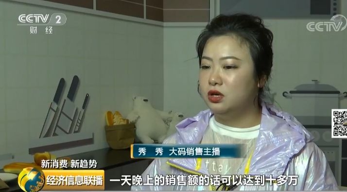 大码销售主播 秀秀:我卖得比较好的,第一是零食,还有一个就是居家用品。我之前卖一个破壁机,一天晚上的销售额可以达到十多万,消费者可能会觉得我和他们是一样的,没有距离感。
