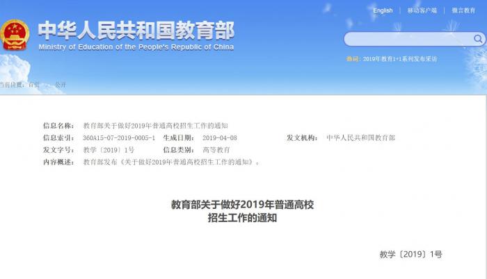 教育部网站4月15日发布《关于做好2019年普通高校招生工作的通知》(简称《通知》),对今年普通高校招生工作进行全面部署。