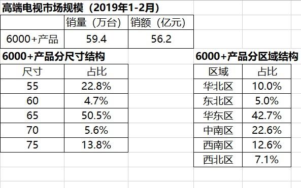 分区域来看,华东、中南、西南地区是高端电视的主战场,以42.7%、22.6%和12.6%的销售占比分列全国前三。3月以来,海信、TCL、康佳、创维、三星等先后发布其春季电视新品,8K、OLED、AI、智能互联等是各大厂商视力捧的卖点。