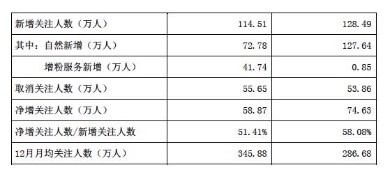 这42.58万人的外部增粉,2017年采购费用约1万元,2018年采购费用约40.02万元,合计花费为41.02万元,相当于买一个粉丝不到1块钱。
