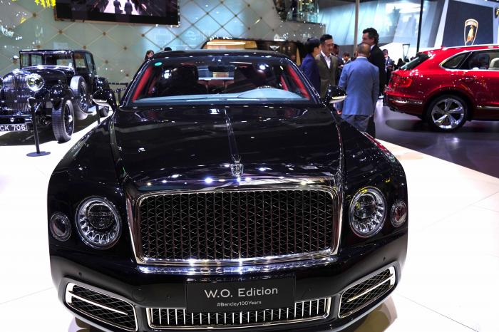 4月16日,上海国际车展开幕之际,宾利展示了其参展阵容,包括慕尚创始人典藏版和添越插电式混动版两款新车在国内首次亮相。