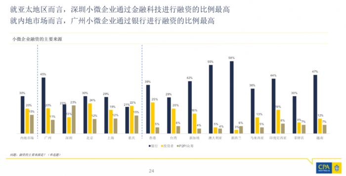 调查数据显示,就亚太地区而言,深圳小微企业通过金融科技进行融资的比例最高,达到了23%,远高于广州的11%、北京的12%和上海的12%。