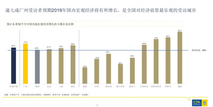 数据显示,在2018年所有中国内地受访城市中,广州小微企业的运营状况最为乐观,业务取得增长的企业比例高达77%,增加员工人数的企业比例达46%。