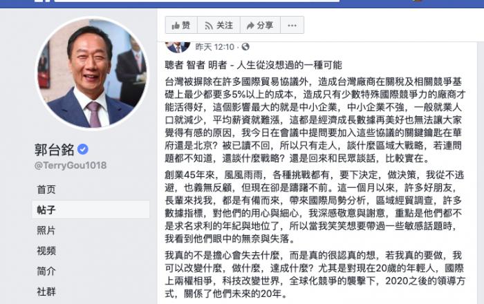 郭台铭确定参选2020!谁会是富士康接班人?(含视频)