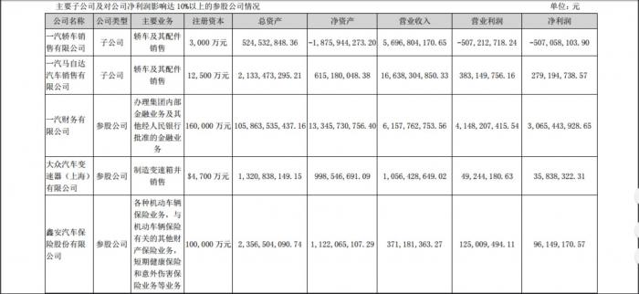 (一汽轿车2018年子公司业绩情况)