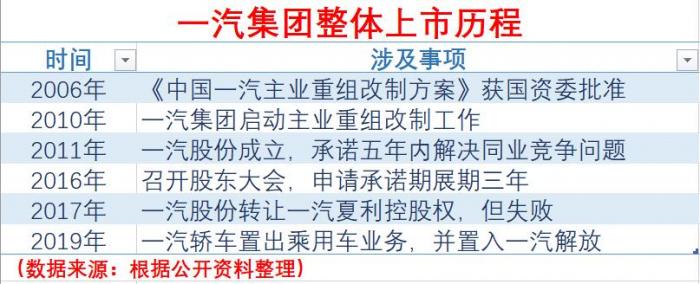 (一汽集团上市历程)