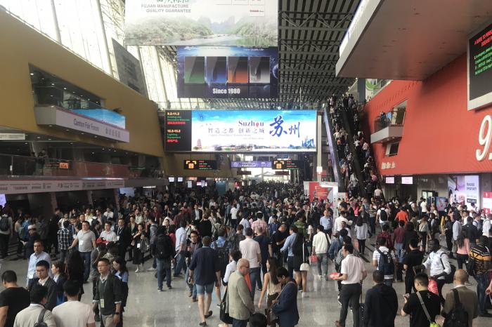 (广交会展馆B馆,4月16日下午两点,人头攒动。图/21世纪经济报道记者吴睿婕)