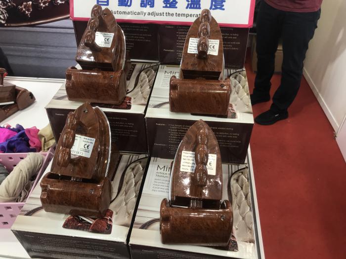这个看似像玩具一样的迷你熨斗,其实在设计上也做了细致考量。比如,这款熨斗的长度等于是普通熨斗的宽度,而宽度则刚好可以满足熨平衣物角落的需求(如它的宽度刚好等于衬衫纽扣间的宽度)。据展位负责人介绍,这款迷你熨斗可以根据衣服厚薄和质地的不同调整温度,从而满足不同需求。