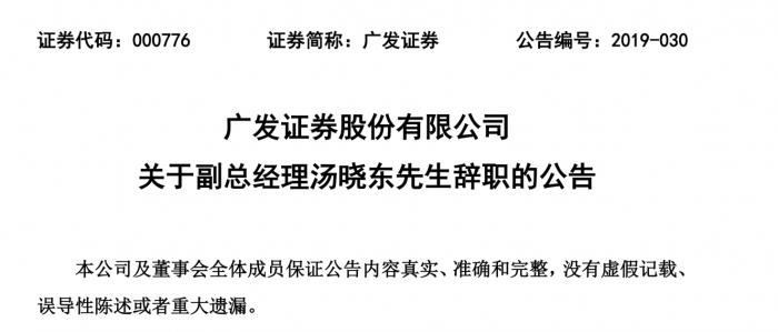 首先,15日晚公司表示,汤晓东先生因个人原因,申请辞去公司副总经理职务。汤晓东去年6月才加盟广发,至今上任未满一年,任职期限之短颇为罕见。