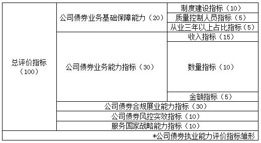记者独家获悉,在初步的设计中,总计100分的公司债券业务的评价指标中包括基础保证能力指标、业务能力指标、合规展业能力指标、风控实效指标以及服务国家战略能力指标。