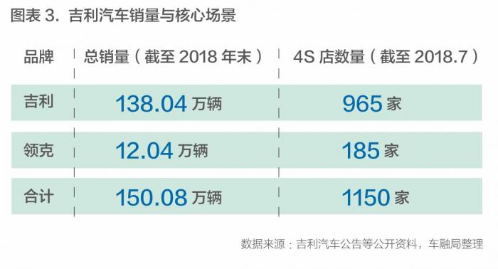 在新车领域,主机厂商和利益深度捆绑的经销商集团历经多年沉淀,借助成熟的4S店体系,辅之以数量庞大、下沉到低线城市和乡镇的二级经销商网络,掌握着覆盖优质客群的消费场景。以近年来风头正盛的吉利集团为例(如图表3):