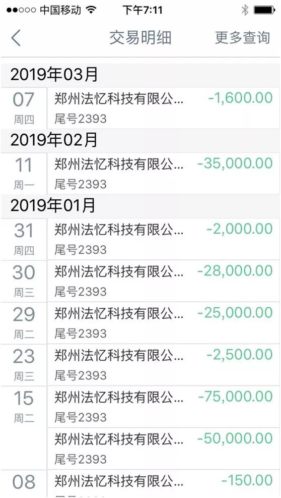 从1月8日汇入第一笔款150元尝试开始,到4月份,3个月的时间里,蔡先生累计汇入款项将近22万元,均进入到郑州法忆科技有限公司对公账户。