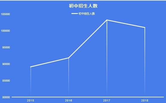 北京市初中招生人数与高中变化趋势不同,呈现V字形走势。2012-2015年逐年下降,2015-2018年则逐年上升。