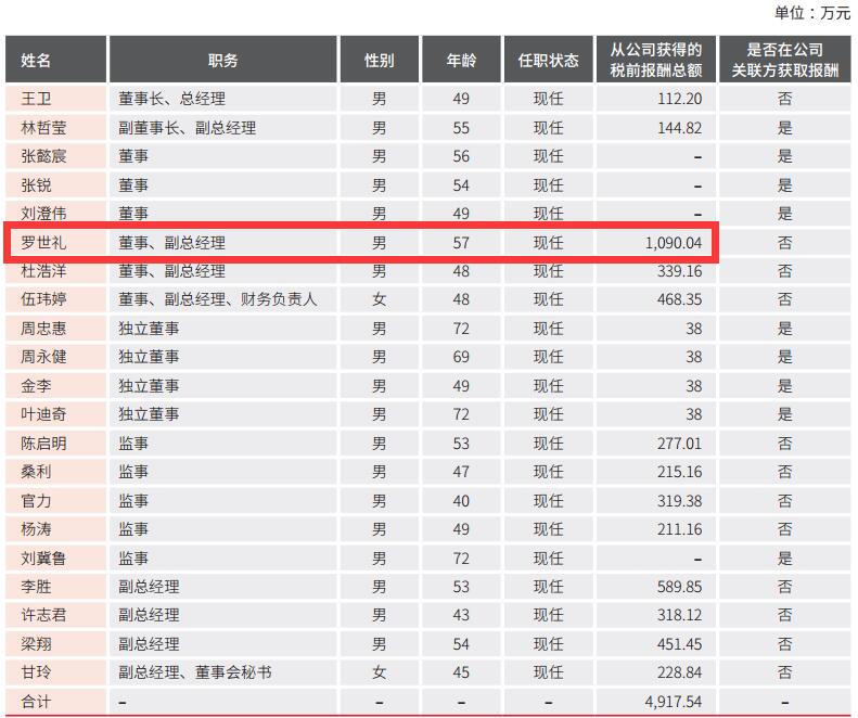 中新经纬客户端查阅顺丰控股2018年年报发现,在高管薪酬榜上,罗世礼薪酬为1090.04万,是顺丰唯一超过千万薪酬的高管,而顺丰董事长王卫2018年薪酬仅有112.2万,顺丰高管成员在2018年总薪酬为4917.54万。