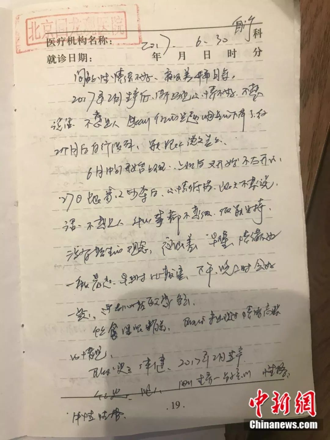 王灿在北京安贞医院确诊抑郁症 受访者供图