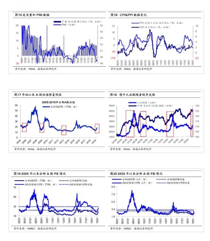从历史规律来看,股牛往往在债券牛市之后出现。如04/12-05/10期间10年期国债收益率从 5.4%降至2.8%,随后上证综指从05/6/6的998点涨至07/10/16的6124点。08/8-09/1期间10年期国债收益率从 4.5%降至2.7%,随后上证综指从08/10/27的1664点涨至09/8/4的3478点。14/1-16/1期间10年期国债收益率从 4.7%降至2.7%,期间上证综指从14/7的2000点附近持续涨至15/6/15的5178点。这一次也同样,18/2以来债市持续走牛,股市从19/1/4的2440点涨至目前3200点附近。