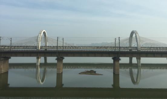 武汉长江大桥上,纵有疾风起,人生不言弃。