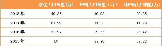 由当年开始,深圳进入户籍政策宽松期,户籍人口增量构成了常住人口增量的一个很大的比重。但2018年,这一情况发生了变化。