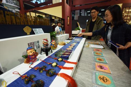 参观者在观看博物馆的文创产品。 IC photo-
