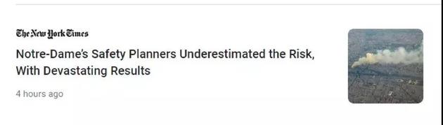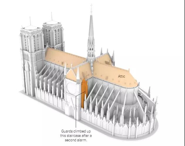 《纽约时报》就介绍说,在圣母院的火警敲响后,该系统并不会自动通知消防部门,而是需要安保人员先爬至少6分钟的楼梯上到阁楼里去检查火情,然后再由安保人员去报警……