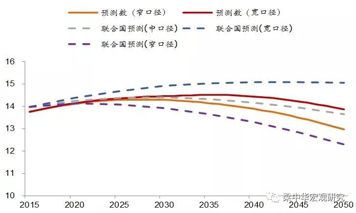 我们对于总人口的两种预测结果,介于联合国宽、窄两种预测口径中间,这也从侧面反映了我们预测结果的稳健性。