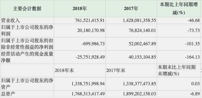 年报显示,2018年上海凤凰实现营业收入7.62亿元,同比下滑46.68%;归属于上市公司股东的净利润2018.02万元,同比下滑73.73%;扣除非经常性损益后,归属于上市公司股东的净利润亏损69.99万元。而2017年,归属于上市公司股东的扣非净利润为5200.25万元。