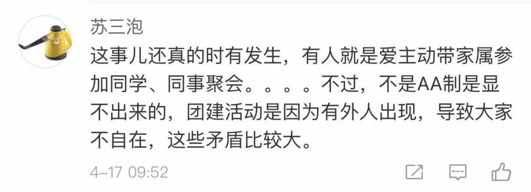 此时,如果喊来家属参加,就会显得和整体氛围格格不入,互相都可能会觉得尴尬。