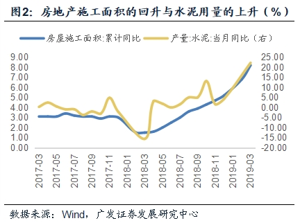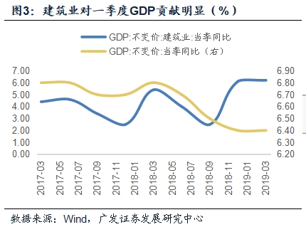 1)房地产施工端修复导致建筑业整体偏强。一季度建筑业实际GDP增速是2017年以来最高,贡献明显。在前期报告《2019,经济韧性从何而来》中我们曾提供一个与房地产施工有关的独特解释视角。一季度房地产施工和水泥等部门数据可初步验证这一逻辑。