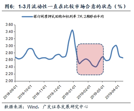 从银行质押式回购利率7天的走势来看,年初至3月中旬一直在偏低位,比较符合流动性“合理充裕”的状态。
