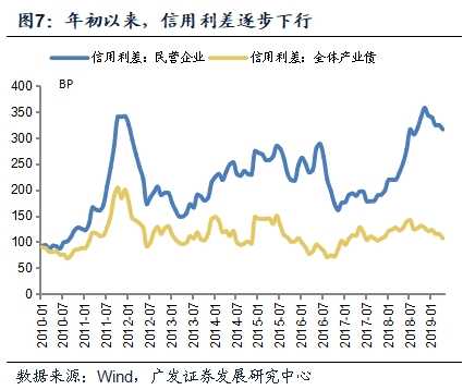 企业尤其是中小企业信用条件也已有显著性修复,民企信用利差逐步下行。