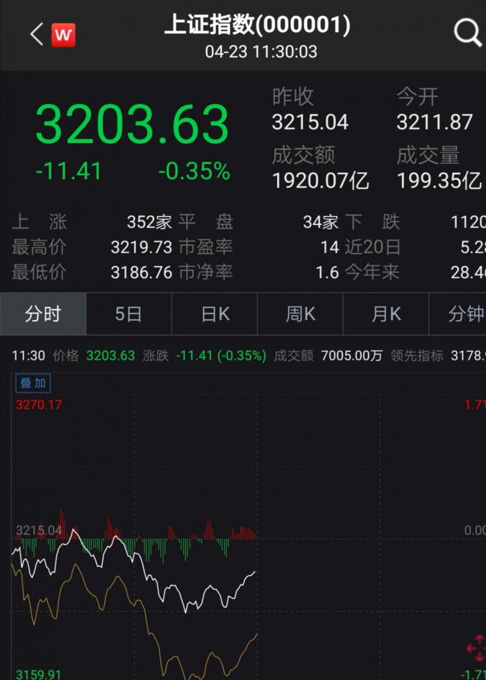 4月23日的A股仍是一片绿意盎然,早盘三大股指分别微跌0.42%、0.77%和0.61%。