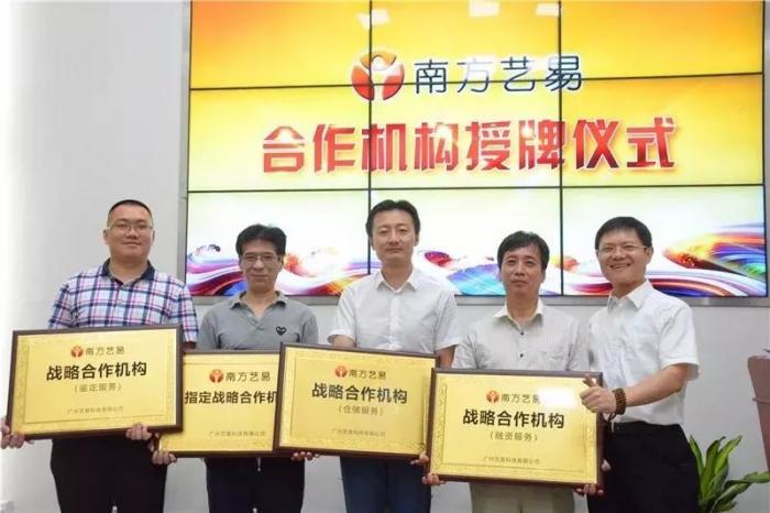 2018年8月6日,南方艺易商城与广州钱道典当有限公司、广州国标钱币收藏品鉴定评估机构有限公司、北京中工美国际货物运输代理有限责任公司以及广州市纵原邮币卡收藏品市场四方机构代表分别签署了战略合作协议,并同时举行“战略合作机构”授牌仪式。合作双方将在融资服务、鉴定服务、仓储服务等多个方面展开长期、全面的战略合作。
