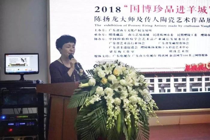 2018年12月1日,“国博珍品进羊城——陈扬龙及传人陶瓷艺术作品展”开幕式在广东省南方文化产权交易所展厅盛大举行。展会展出了中国国家博物馆永久收藏和展出的数十件“薄施淡染”釉下五彩陶瓷珍品。