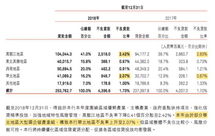 如上图哈尔滨银行年报中披露2018与2017年行业不良数据看,2018年哈尔滨银行不良集中在传统制造业、电力行业以及批发和零售业,而哈尔滨银行也随之选择调整贷款结构、差异化制定产能过剩行业与地方政府融资平台业务风险防控策略,未来将控制相关产业占比,以应对其带来的不良资产压力。
