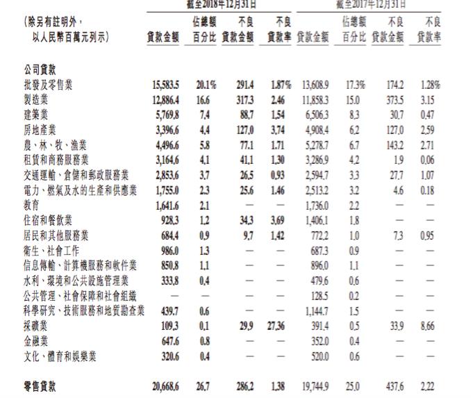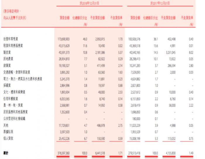 从盛京银行2018与2017年不良行业分布数据看,制造业虽较2017年有所下降但仍处于较高水平,此外批发零售业的不良也出现了明显攀升。