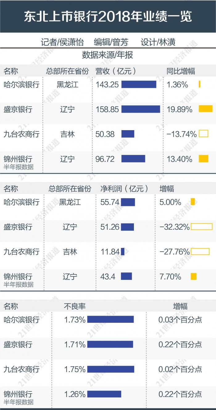 从上市银行层面看,有三家总部位于东北三省(黑龙江、吉林、辽宁)的上市城商行,和一家上市农商行,注册地覆盖三省,从4家上市银行财报与金融行业角度,可管窥东北经济在2018年经历的挑战与未来或许存在的转型机遇。