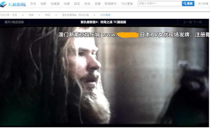 (这部盗版影片是画质不清晰的“枪版”,画面上有赌博网站的广告)
