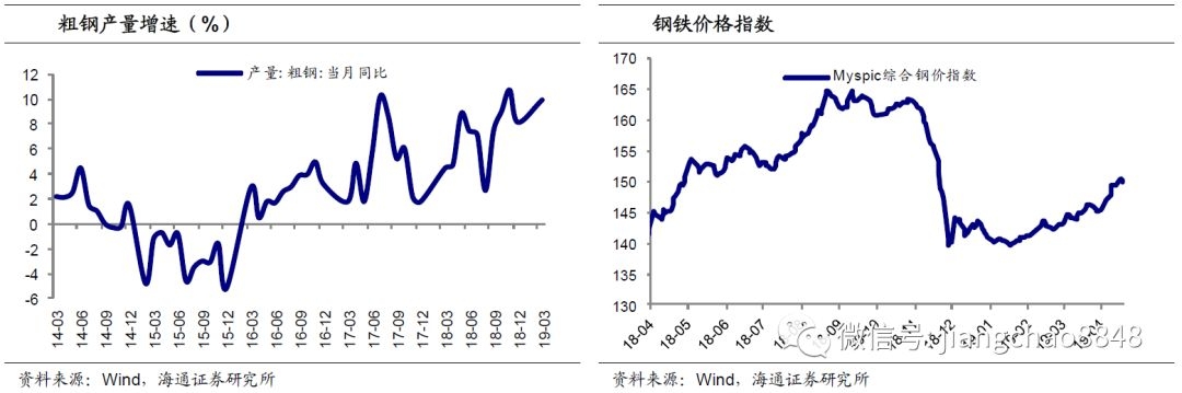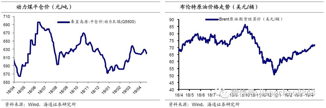 3月PPI明显回升,正是受到近期需求改善的拉动。3月需求端较1-2月有明显改善,投资、消费和出口增速均有回暖,而受到终端需求拉动,工业生产量价齐升,3月工业增加值同比增速大幅反弹至8.5%的新高,各主要工业品产量增速普遍回升,而钢价、煤价也双双走高。此外,国际原油价格19年以来从50美元/桶左右持续回升到目前70美元/桶以上,也对生产资料价格起到支撑。