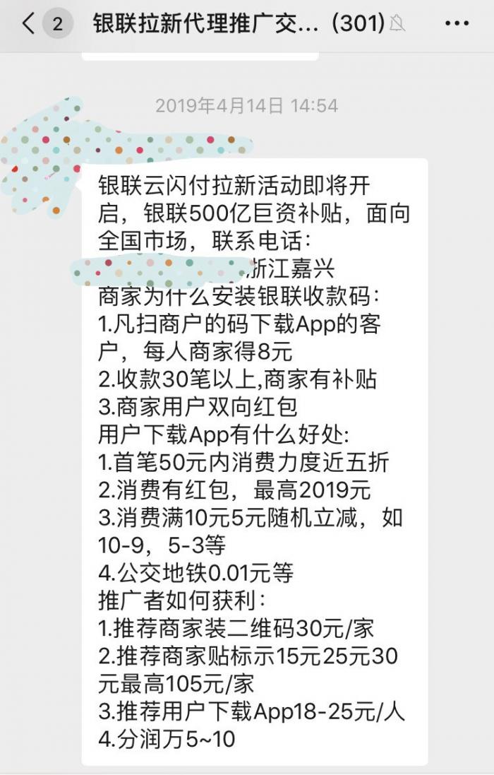(注:疑似某云闪付地推服务商虚假宣传广告)