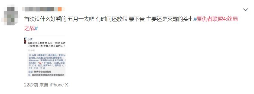 而作为复仇者联盟系列的“终局”,今年《复联4》在内地的零点场,比北美和中国香港地区都早,影迷间的热度已可想而知。比如——