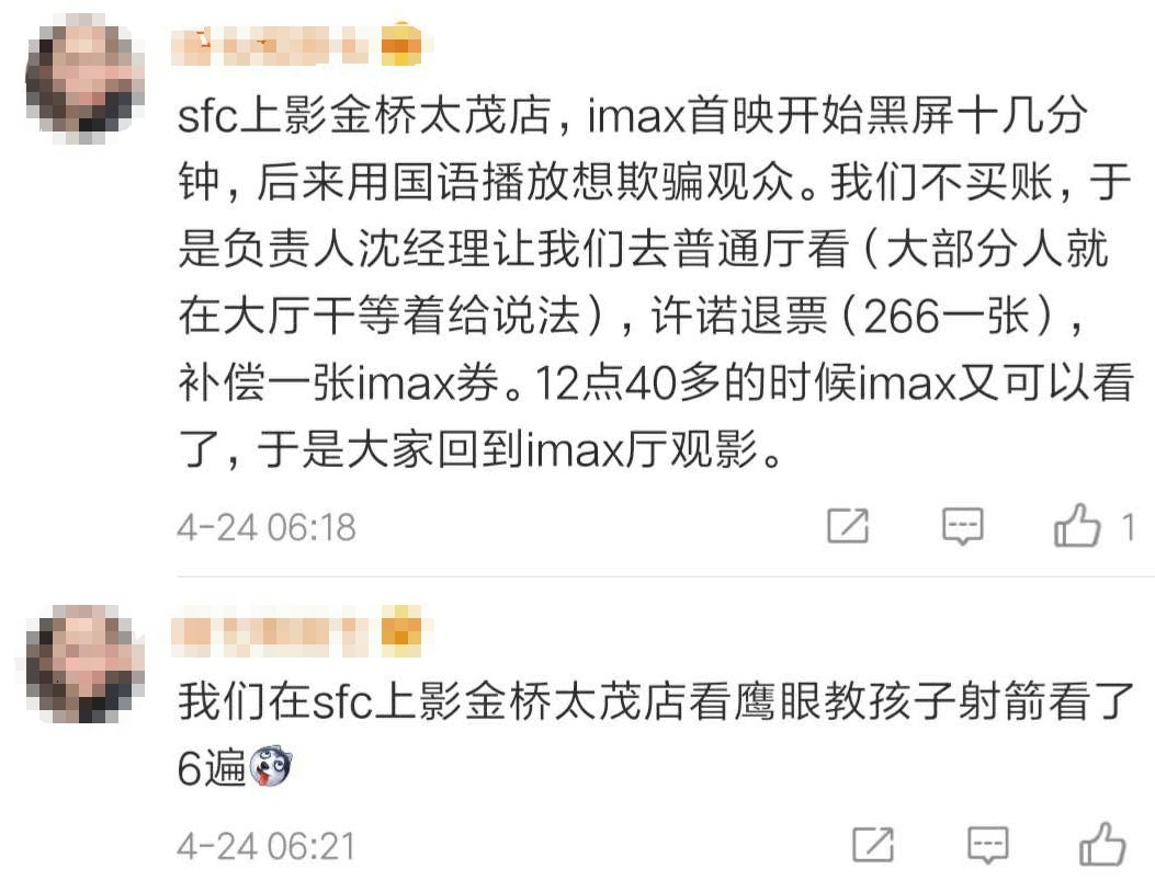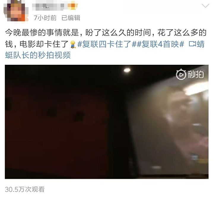 观影顺利的粉丝们自然心满意足、称赞不已,但还有部分粉丝在观影中惨遭各类瞠目结舌的问题。今日凌晨,新浪微博以及多个影迷微信群里哀嚎声阵阵: