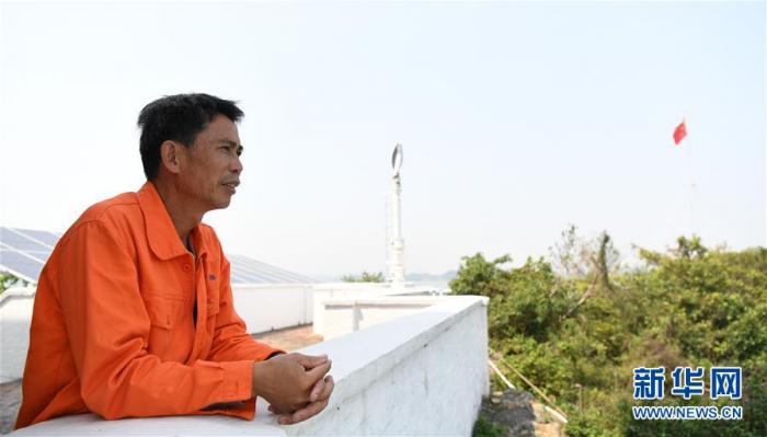 黄灿明在灯塔下向远处瞭望(4月2日摄)。新华社记者邓华摄