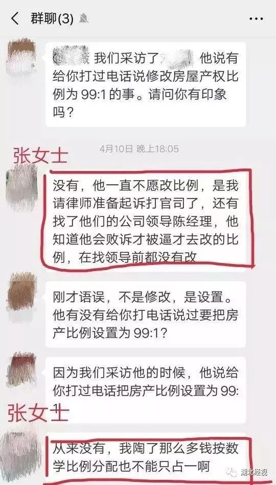 张宇琴表示丈夫从未和她沟通过会将产权比例设置为99:1。