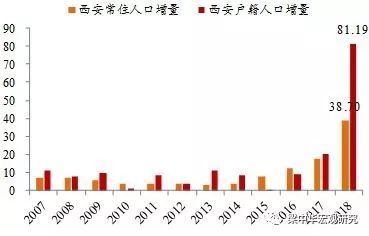 注:2017年及以前的人口增量采用旧口径(不含西咸新区咸阳片区),2018年增量调整为新口径(2018年新口径-2017年新口径)。