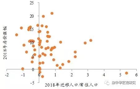 图表:2018年各地人口迁移比与房价涨幅(%)